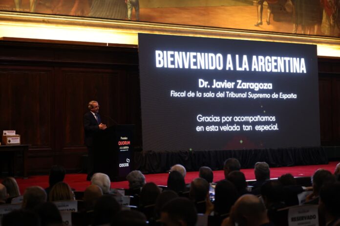 “Quiero expresar mi agradecimiento a la revista Quorum por este pequeño reconocimiento que me han hecho”, comenzó diciendo el fiscal español Javier Zaragoza, del Tribunal Supremo de España, durante la apertura de la ceremonia de los Premios Quorum 2025, realizada en la Facultad de Derecho de la Universidad de Buenos Aires.